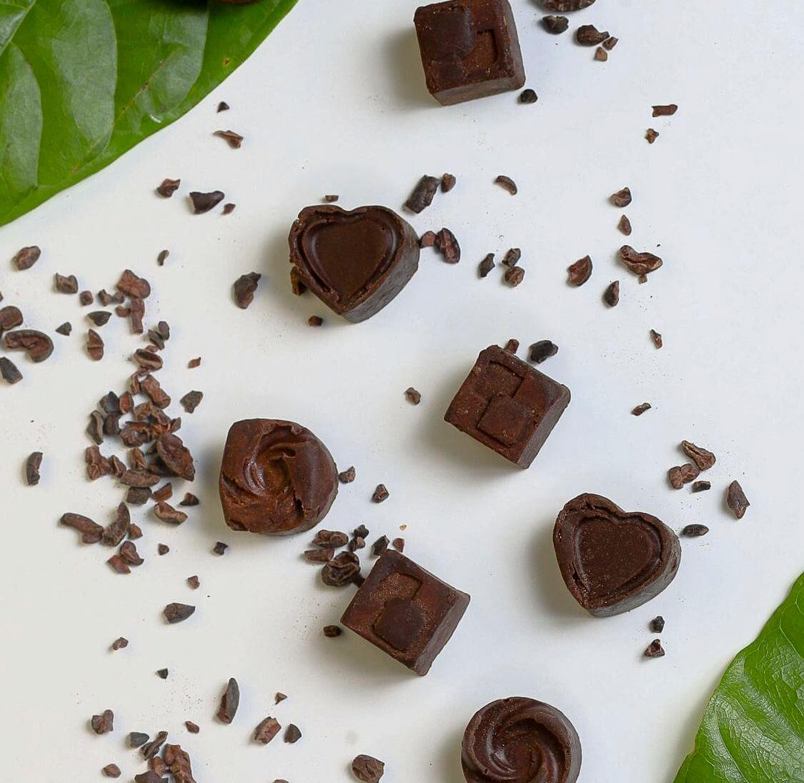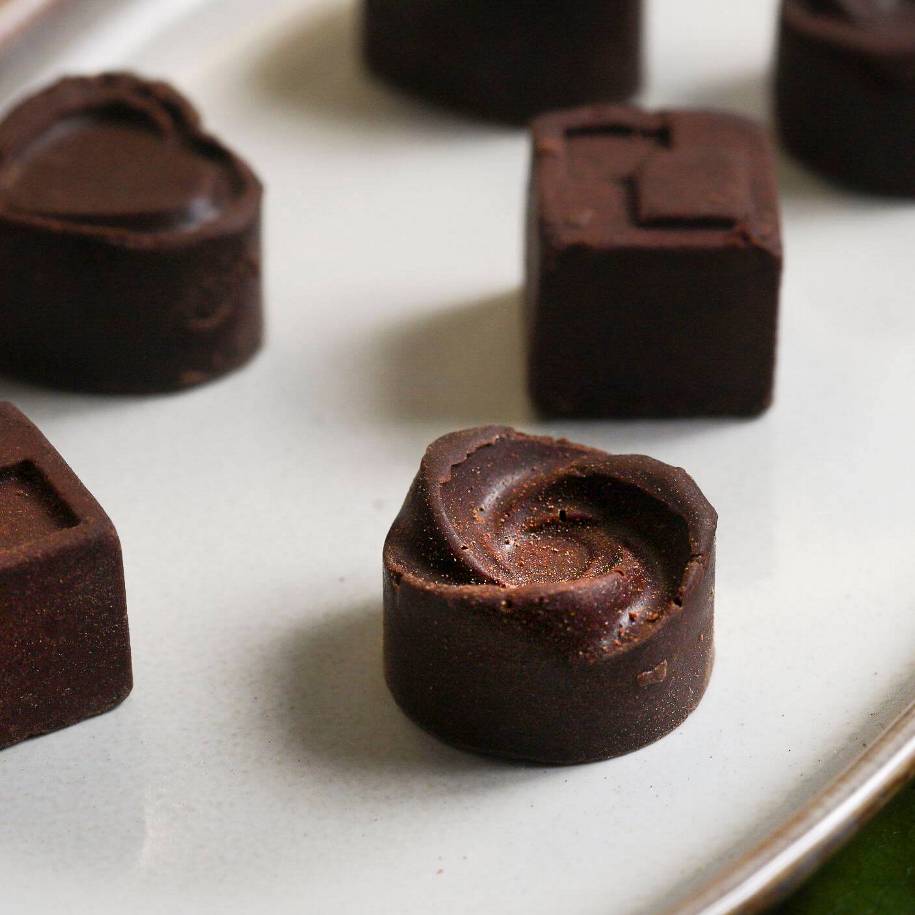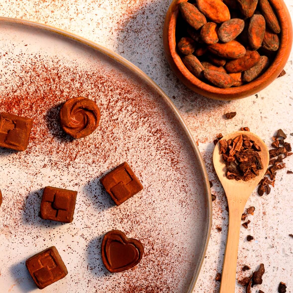 Figuritas de 10 gramos de chocolate artesanal al 50%, 65% y 80% de cacao.